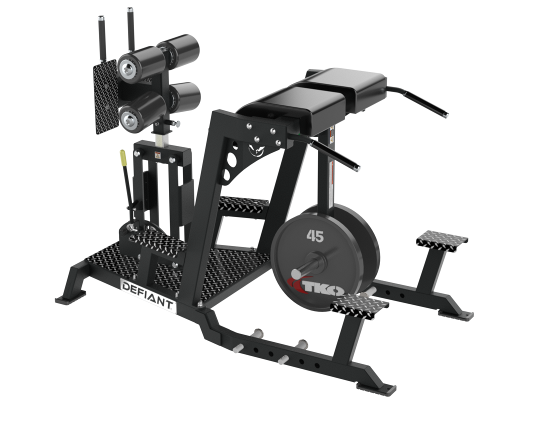 Defiant Strength acknowledges the crucial role of a strong posterior chain—comprising the lower back, glutes, hamstrings, and calves—in athletic performance training, as it is the foundation of an athlete’s acceleration and speed. Glute/ham raises are highly effective for targeting the hamstrings, while reverse back extensions focus more on the lower back, a common problem area for both athletes and non-athletes. Recognizing that the posterior chain is essential for an athlete’s performance, Defiant Strength has developed the Hyper/GHD Combo. This innovative equipment combines a glute/ham developer with a reverse extension, offering comprehensive posterior chain training with superior, heavy-duty construction that distinguishes it from other products.