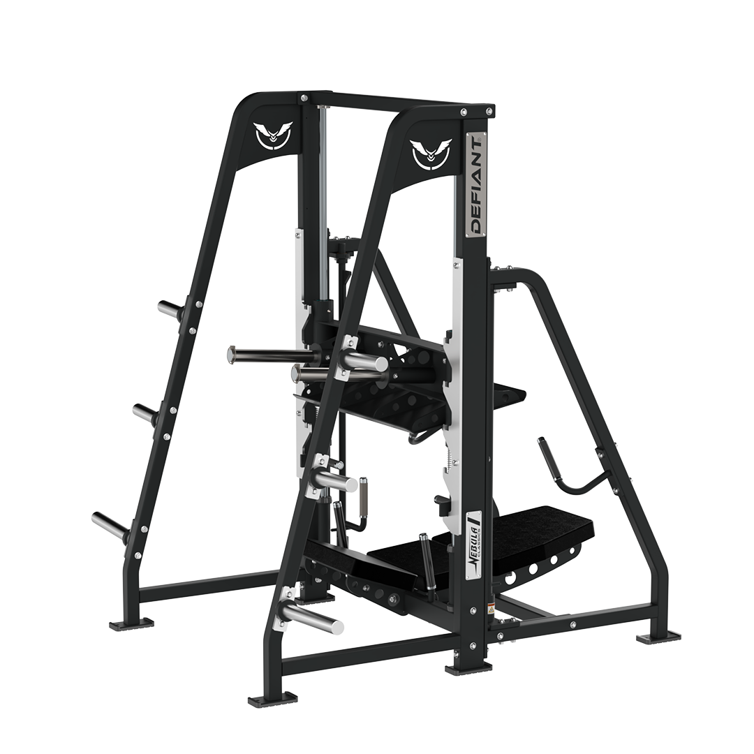 Defiant Strength Vertical Leg Press-Built for athletes and facilities that demand results, the Defiant Strength Vertical Leg Press is engineered to maximize lower-body strength development while combining comfort, safety, and durability for a premium training experience. The angled large footplate provides a secure and versatile platform for multiple foot positions, allowing athletes to effectively target quads, glutes, and hamstrings. Adjustable safety stops ensure confidence under heavy loads, giving lifters the ability to push their limits safely. An angled lumbar seat promotes proper body alignment and minimizes lower back strain, while integrated plate storage keeps weights organized and within reach for more efficient training sessions. Overhead and lower seat handles add stability and control through every rep, making this machine an essential piece for serious strength training environments.